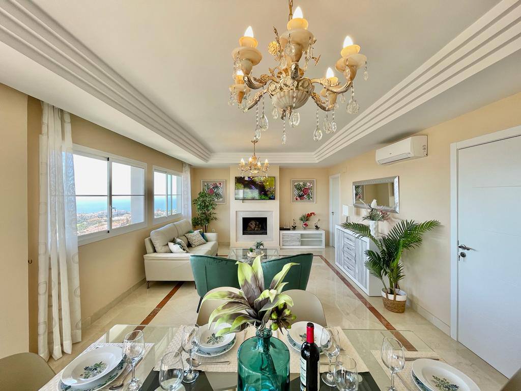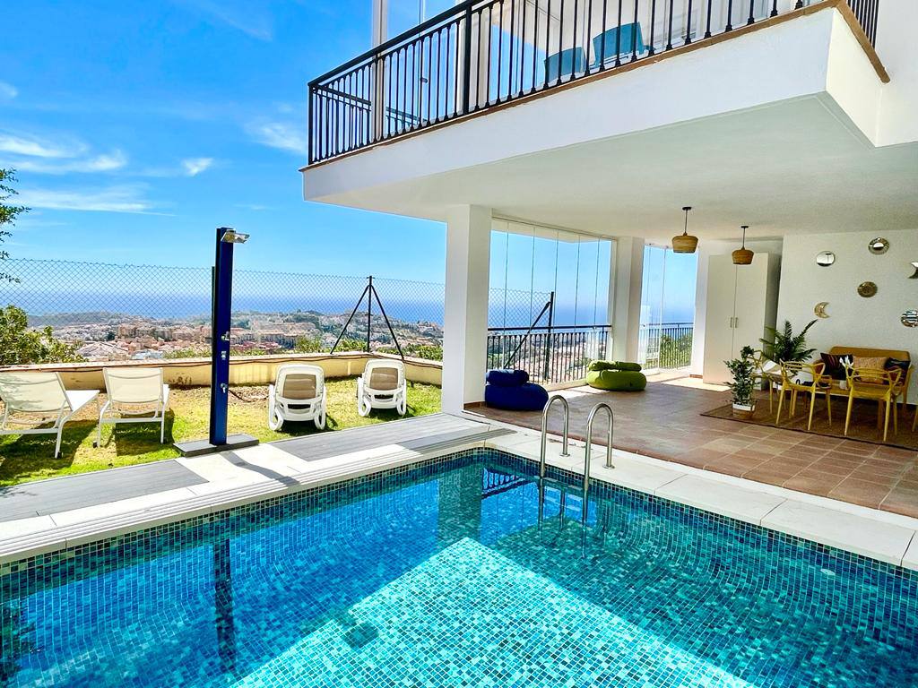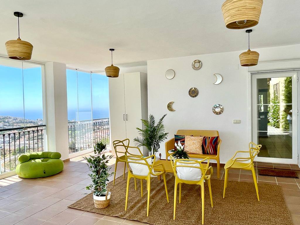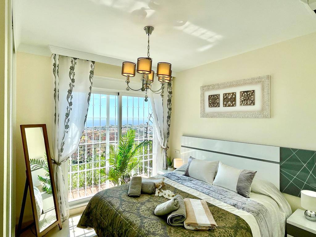 Experience serenity and breathtaking vistas at Villa Mirador, a charming 3-bedroom semi-detached villa nestled in the tranquil hills of Riviera del Sol, Mijas Costa. This private retreat is ideal for families or groups of up to six guests, offering a peaceful escape with convenient access to both mountains and coastline.