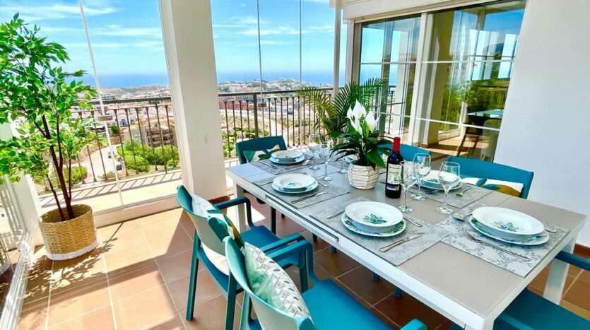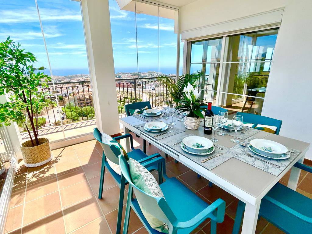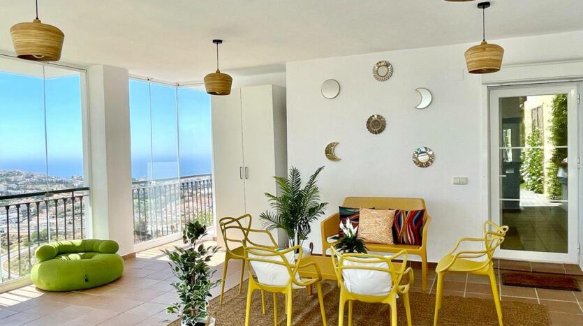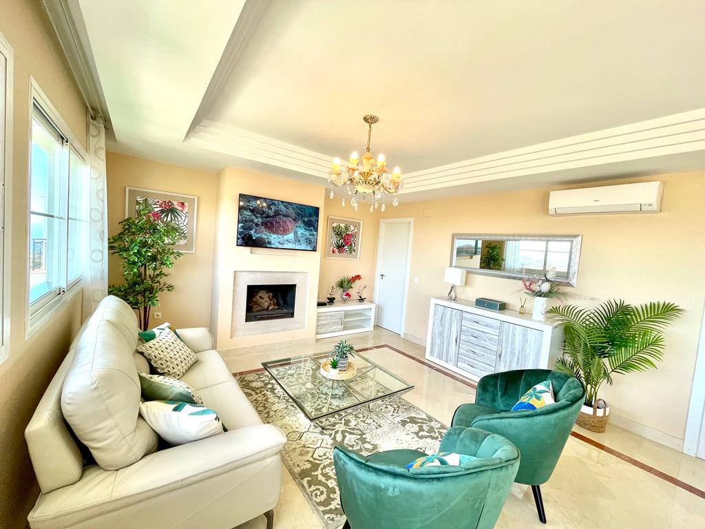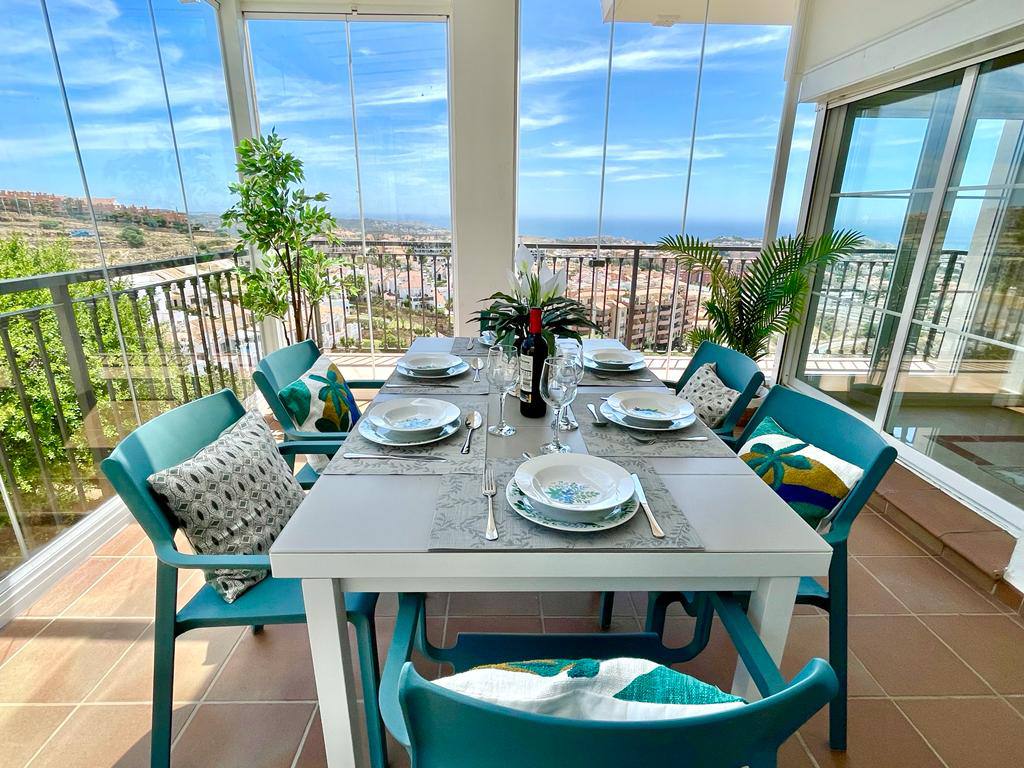 Experience serenity and breathtaking vistas at Villa Mirador, a charming 3-bedroom semi-detached villa nestled in the tranquil hills of Riviera del Sol, Mijas Costa. This private retreat is ideal for families or groups of up to six guests, offering a peaceful escape with convenient access to both mountains and coastline.